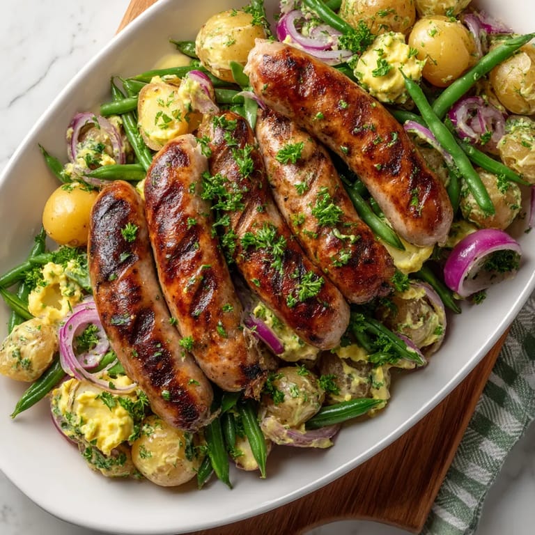 Merken Dieser saftige Bratwurstgrill mit würzigem Senf-Kartoffelsalat ist mein Lieblingsgericht für sommerliche Grillabende und bringt authentischen deutschen Geschmack auf den Tisch.