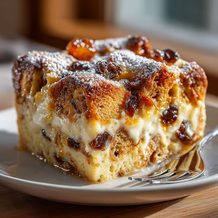 - Backe den Pudding etwa 35–40 Minuten. Die Oberfläche sollte goldbraun sein, die Masse in der Mitte gestockt — prüfe mit einem Messer, es sollte sauber herauskommen.