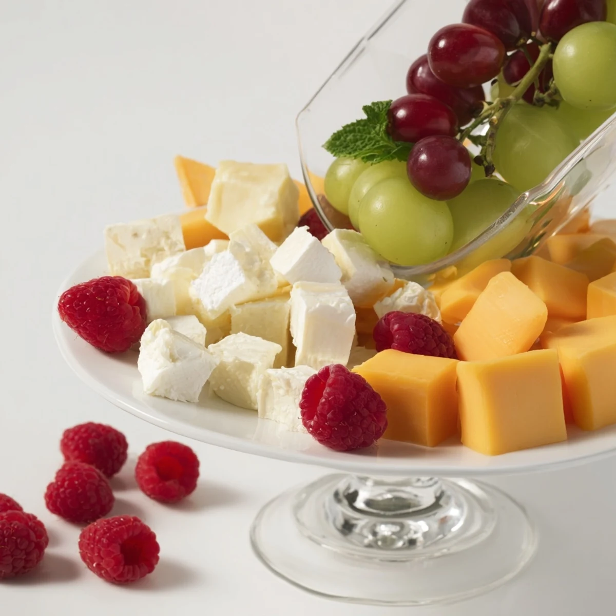 - Grüne und rote Trauben: Diese sind Ihre Wasserfallelemente—wählen Sie süße Sorten und vermeiden Sie die sehr großen, die schwer zu essen sind.