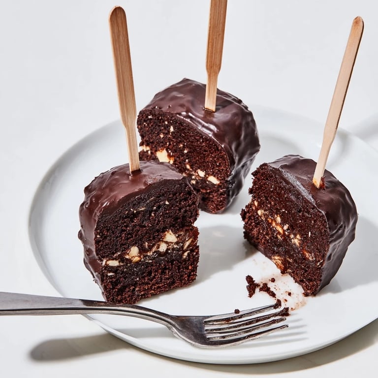 Merken Ein verspielter Twist auf die klassische Sachertorte: Diese Muffin-Sticks vereinen reichhaltige Schokolade, Aprikosenmarmelade und einen glänzenden Schokoladenguss zu einem dekadenten, spaßigen Genuss.