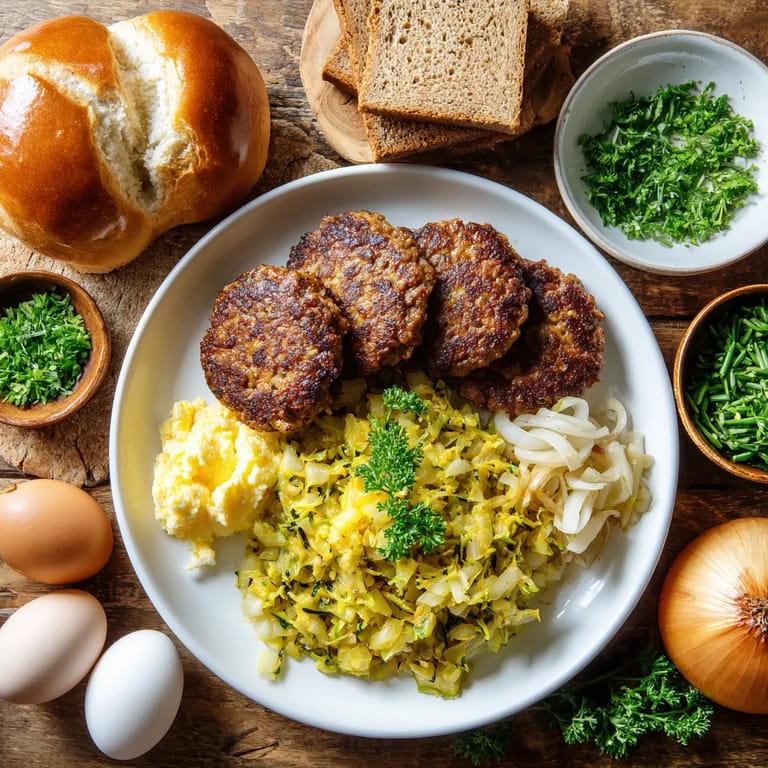 Merken Dieses Rezept für klassische Frikadellen mit cremigem Zucchini-Oignon-Stampf bringt das Gefühl von deutschen Familienessen direkt zu dir nach Hause. Zarte Fleischküchle treffen auf sanft geschmorte Zwiebeln und feine, leicht gebratene Zucchini – eine bodenständige Kombination, die satt macht und zugleich angenehm leicht wirkt. Für mich ist es das perfekte Alltagsgericht und schmeckt Kindern wie Erwachsenen gleichermaßen.