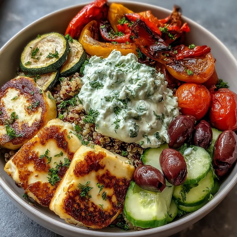 Merken Eines Sommerabends, als die Hitze endlich nachließ, stand ich in meiner Küche und starrte auf einen Berg von gegrilltem Gemüse, das mein Partner vom Markt mitgebracht hatte. Ich wollte etwas Leichtes, aber Sättigendes machen, etwas, das sich anfühlte wie Urlaub auf einem Teller. So entstand diese Schüssel, ein Zusammenspiel von rauchigem gegrilltem Gemüse, würzigem Protein und dieser cremigen Tzatziki-Sauce, die alles zusammenbringt. Seitdem bereite ich sie ständig zu, und jedes Mal schmecke ich diesen einen perfekten Abend darin.