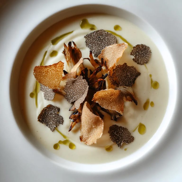 Merken Dieses cremige Kartoffelvelouté mit rauchiger Note und Waldpilz-Garnitur ist mein liebstes Gericht, wenn ich Familie oder Gäste ein bisschen überraschen und richtig verwöhnen will. Die samtige Suppe bekommt durch Trüffel, einen Tropfen Rauchöl und knusprige Pastinakenchips ein herrlich raffiniertes Aroma, das an einen Spaziergang durch den Herbstwald erinnert. Für mich ist das wie ein kleiner Luxusmoment an grauen Tagen und trotzdem unkompliziert zuzubereiten.
