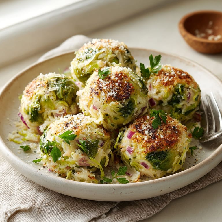 Parmesan lässt sich durch würzigen Bergkäse oder für vegane Varianten durch Hefeflocken ersetzen. Wenn kein Rosenkohl da ist, klappt das Rezept auch mit fein geraspeltem Brokkoli oder Grünkohl. Wer keine Eier mag, kann zu Eiersatz oder einem Leinsamen—Gel greifen.