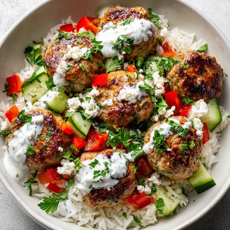 Merken Die Griechische Fleischbällchen-Bowl bringt frische, würzige und cremige Noten zusammen und ist ein echtes Wohlfühlessen für jeden Tag. Saftige Hackfleischbällchen, buntes Gemüse und ein zitroniges Joghurt-Dressing verschmelzen zu einem mediterranen Geschmackserlebnis und machen nicht nur satt, sondern auch glücklich.