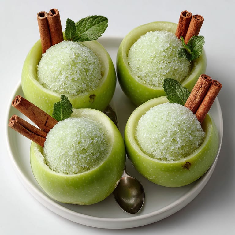 Sorbets haben in Europa eine lange Tradition als Zwischengang oder Dessert. Die Idee, sie direkt im Apfel zu servieren, ist eine moderne Variante – inspiriert vom Trend, klassische Desserts smart zu inszenieren. Gerade in Süddeutschland werden im Herbst viele Apfelvarianten gefeiert – die grün gefüllten Früchte erinnern an regionale Apfelfeste.