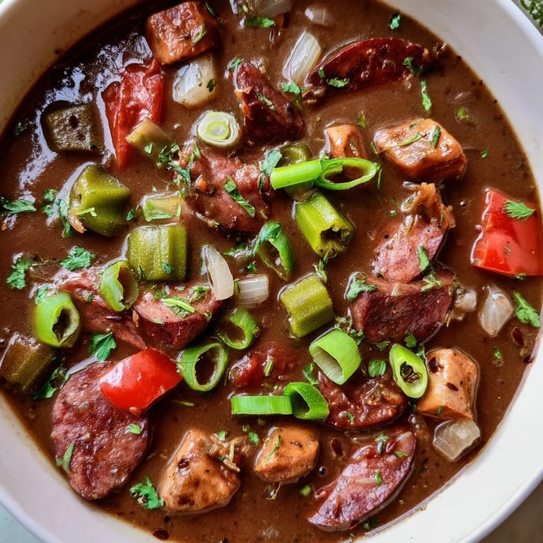 Merken Eines Abends, als ich dieses Gumbo für ein paar Freunde kochte, die sich gerade von ihren Ex-Partnern getrennt hatten, passierte etwas Magisches: Die Traurigkeit löste sich auf, als sie hineinfuhren. Es war mehr als nur Essen – es war ein warmer Arm um die Schulter. Seitdem weiß ich, dass dieses Gumbo nicht nur nährt, sondern auch heilt.