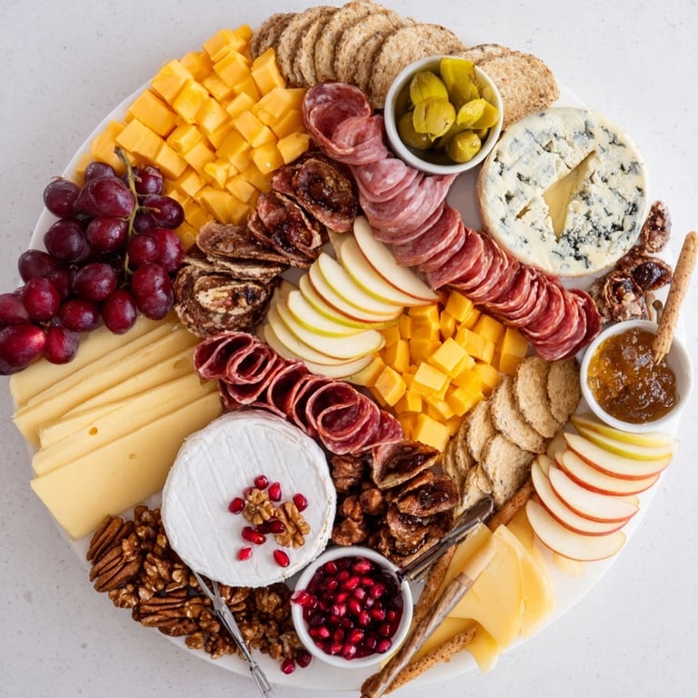 Je nach Saison kannst du wunderbar variieren. Im Frühwinter passen Clementinen oder geröstete Kastanien herrlich zum Ensemble. Für eine vegetarische Version lässt du die Wurstspezialitäten einfach weg und ergänzt mit kleinen Spießen aus gegrilltem Gemüse oder mehr gerösteten Nüssen. Manche vertragen keinen Blauschimmelkäse – ein milder Ziegenkäse ist ein guter Ersatz.