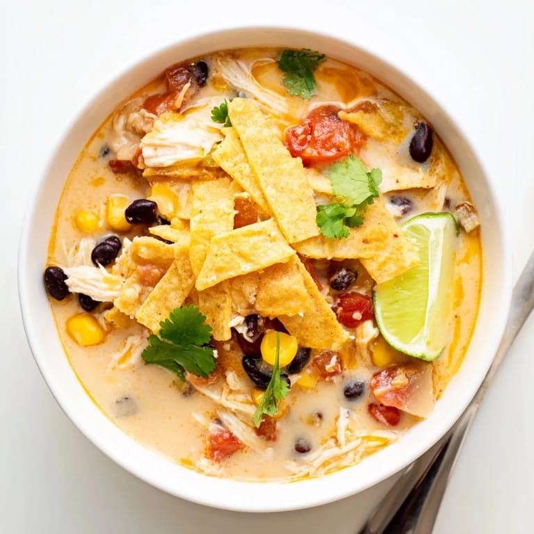 - Die Suppe in Schalen füllen und nach Belieben mit Tortillastreifen, frischem Koriander, Limettenscheiben, zusätzlichem Käse oder Jalapeñoscheiben garnieren.