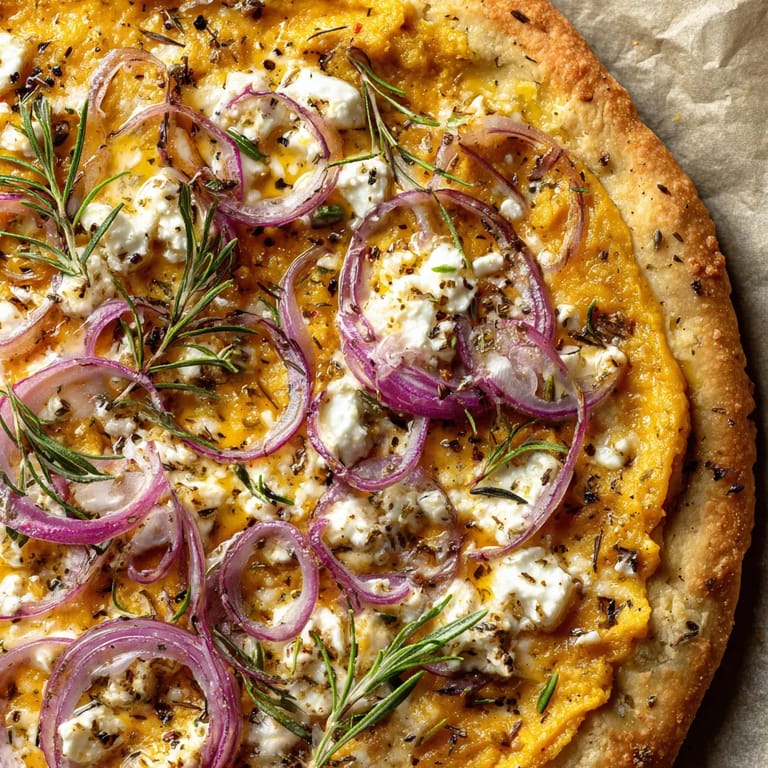 Merken Herzhafter Kürbis-Flammkuchen mit Feta und Rosmarin ist für mich der perfekte Begleiter an kühlen Tagen. Der dünne, extra knusprige Teig trifft auf süßes, seidiges Kürbismus, cremige Crème fraîche und wird durch den salzigen Feta und aromatischen Rosmarin wunderschön abgerundet. Egal ob als Herbstdinner oder schnelles Mittagessen, dieser Flammkuchen sorgt immer wieder für Begeisterung am Familientisch.