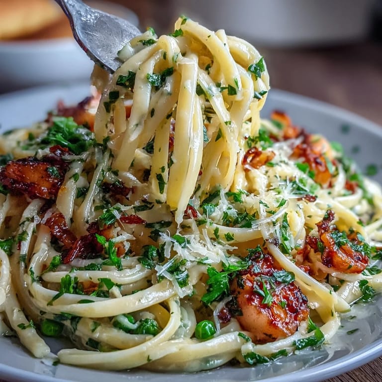 The key to a perfect sauce is the pasta water. Don't skip reserving it before draining—the starch in this water is what helps create that restaurant-quality glossy coating. Start with half a cup and add more gradually as needed. The sauce should coat the pasta without pooling at the bottom of the bowl. Work quickly once the pasta is drained, as the heat from the pasta helps melt the cheese and emulsify the sauce. If you're using fresh peas, blanch them briefly in the pasta water before cooking the pasta to preserve their bright green color.