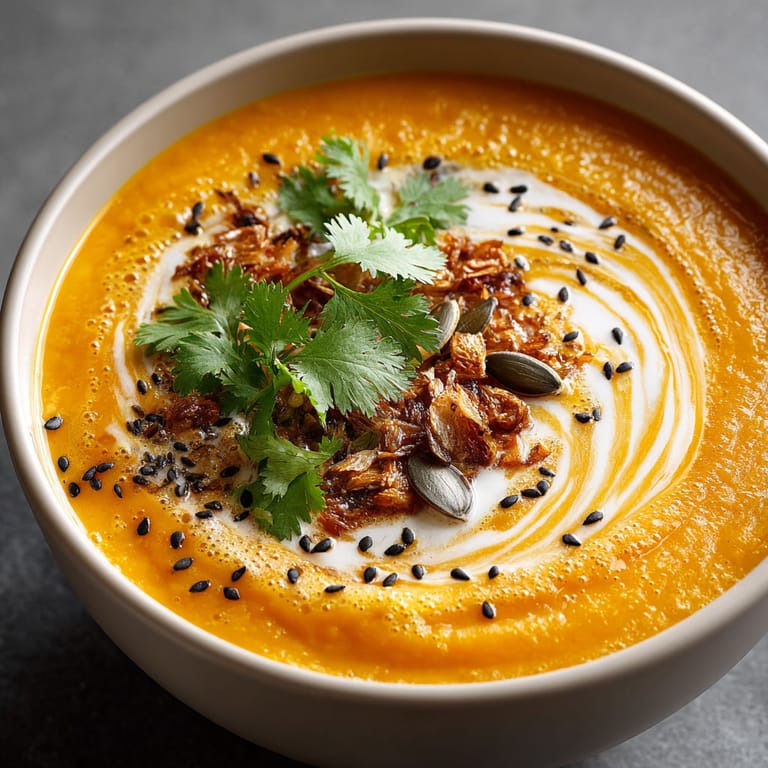 Die Verbindung von Kürbis und Kokosmilch stammt ursprünglich aus den Küchen Südostasiens, wo herzhafte und süße Komponenten gerne kombiniert werden. Die Zugabe von Miso-Paste bringt japanisches Flair in die Schüssel und sorgt für Tiefe. Besonders zu Halloween hat Kürbis in der westlichen Welt Tradition und steht symbolisch für den Herbst und Gemütlichkeit – in dieser Suppe verschmelzen diese Kulturen nicht nur geschmacklich, sondern auch atmosphärisch.