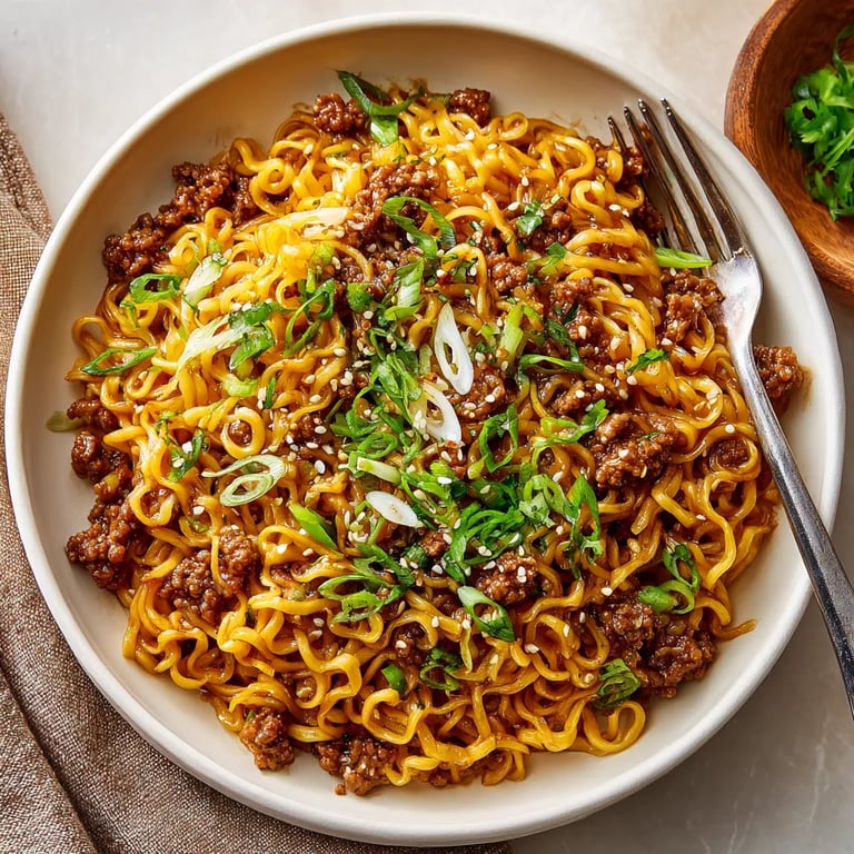 Du kannst statt Rind jedes Hackfleisch nehmen sogar vegetarisch klappt wunderbar mit Tofu oder Sojagranulat. Nudeln nach Wahl verwenden zum Beispiel Soba oder Reisnudeln. Die Sauce schmeckt mit einem Löffel Erdnussbutter nochmal voller und orientalischer. Wer mag, gibt noch Gemüse wie Karotten oder Spinat in feinen Streifen dazu das sorgt für Extraportion Vitamine.