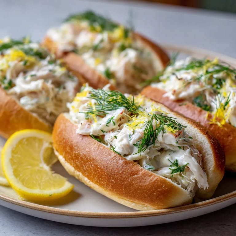 Diese Krabbenbrötchen passen hervorragend zu einem knackigen Salat mit Zitrusvinaigrette oder zu einer leichten Gemüsesuppe. An warmen Tagen empfehle ich dazu einen gekühlten Sauvignon Blanc oder ein helles Weißbier. Für ein vollständiges Menü können Sie als Vorspeise eine leichte Gazpacho oder als Dessert ein Zitronensorbet servieren.