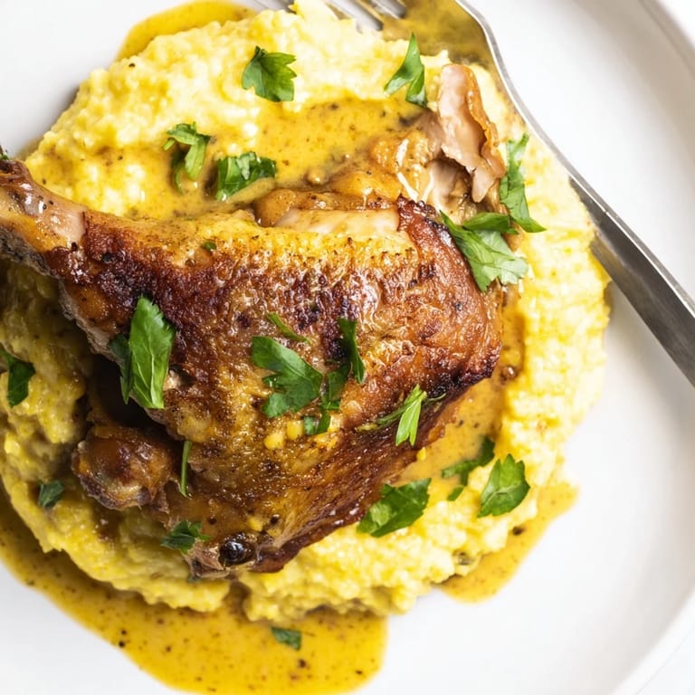 Ich habe dieses Rezept erstmals für ein kleines Herbstfest mit Freunden zubereitet. Die Kombination aus würzigen Hähnchenschenkel und dem Senf-Kartoffelstampf war ein voller Erfolg – alle haben nach Nachschlag gefragt!