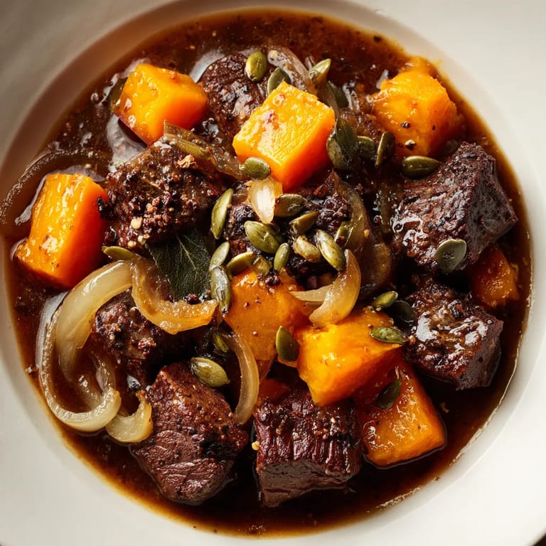 Merken Pfefferpotthast Deluxe mit Pumpernickel war für mich immer ein Lieblingsgericht, seit ich es das erste Mal an einem frostigen Herbstabend für meine Familie gekocht habe. Die raffinierte Zugabe von Hokkaido-Kürbis verleiht diesem herzhaften Rindereintopf eine spannende moderne Note und macht ihn zum perfekten Wohlfühlessen für die kühlere Jahreszeit.