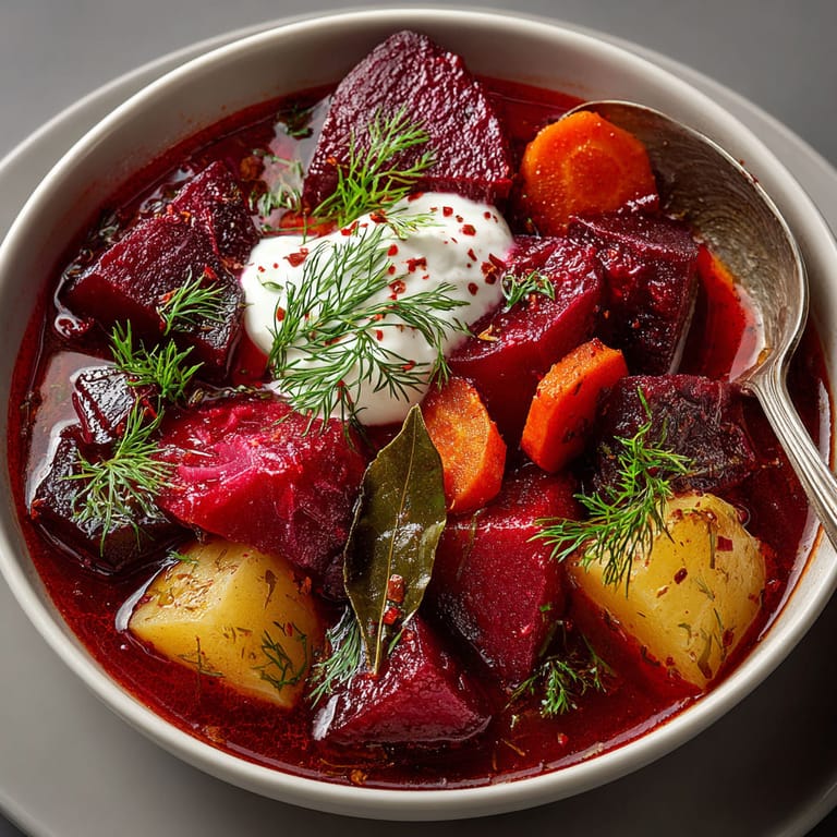 Merken Rote Bete-Eintopf mit Kartoffeln und Wacholderbeeren ist genau das Richtige, wenn dir nach etwas Wärmendem, Gesundem und Herzhaftem ist. Die feinen, erdigen Aromen der Roten Bete verschmelzen mit dem Duft von Wacholderbeeren und werden durch einen Spritzer Balsamico harmonisch abgerundet. Perfekt für die kalte Jahreszeit, und wunderbar sättigend!