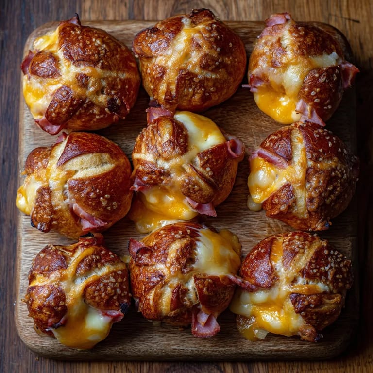 Merken Diese herzhaften Mini-Brezeln gefüllt mit Schinken und Käse sind meine Geheimwaffe für Partys und gemütliche Abende mit Freunden. Die Kombination aus fluffigem Teig, saftigem Schinken und geschmolzenem Käse macht sie unwiederstehlich.