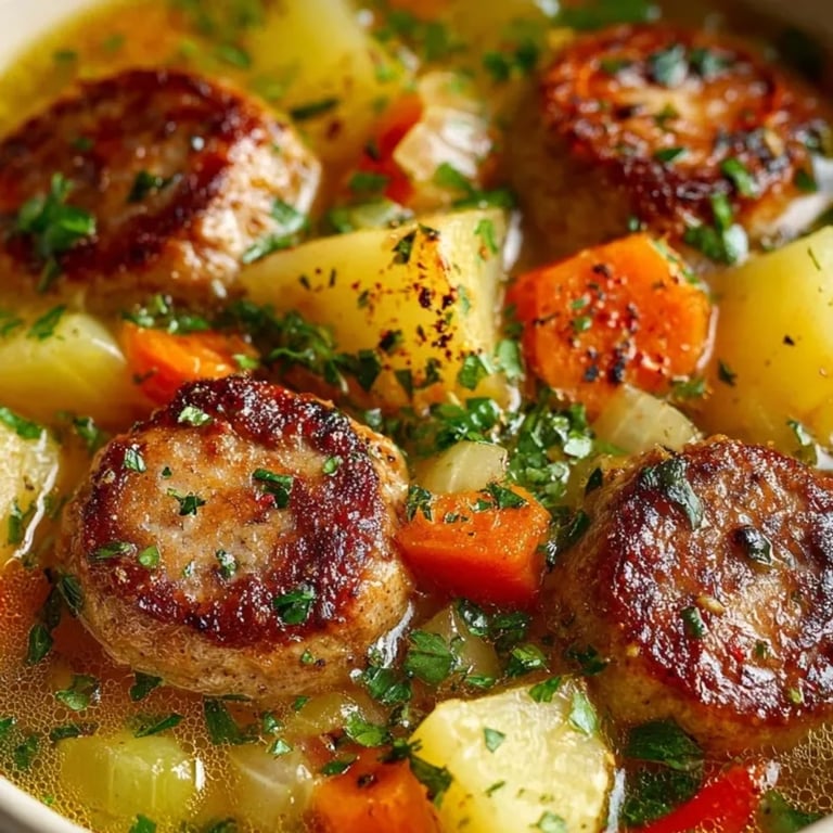 Das erste Mal habe ich dieses Rezept an einem kalten Dienstagabend ausprobiert, als nur noch ein paar Würste und ein Sack Kartoffeln im Kühlschrank lagen – seitdem wünscht sich meine Familie die Suppe regelmäßig, weil sie so wunderbar einfach und lecker ist.