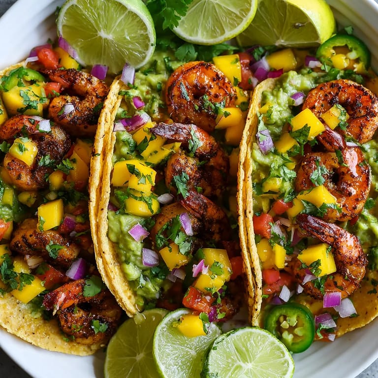 Merken Saftige Garnelen in warmen Tortillas kombiniert mit einer frischen Mango-Avocado-Salsa bringen einen Hauch mexikanische Karibik direkt auf den Tisch Das Gericht punktet mit schnellen Handgriffen und leuchtenden Aromen Perfekt wenn es unkompliziert und trotzdem raffiniert sein soll und ich erinnere mich besonders an lauen Sommerabenden an denen meine Familie am Küchentisch schon auf die duftenden Tacos gewartet hat