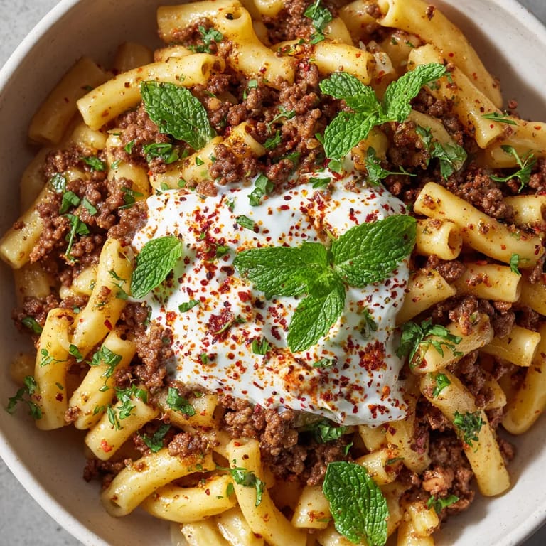 Merken Diese türkische Pasta mit Hackfleisch und Joghurt-Sauce bringt die perfekte Kombination aus herzhaften Aromen und frischer Leichtigkeit direkt auf deinen Tisch und ist ein echtes Wohlfühlessen für besondere Anlässe oder den Alltag. Das Zusammenspiel von würzigem Hackfleisch, cremigem Joghurt und duftender Minze macht dieses Rezept seit Jahren zu einem Favoriten in meiner Küche.