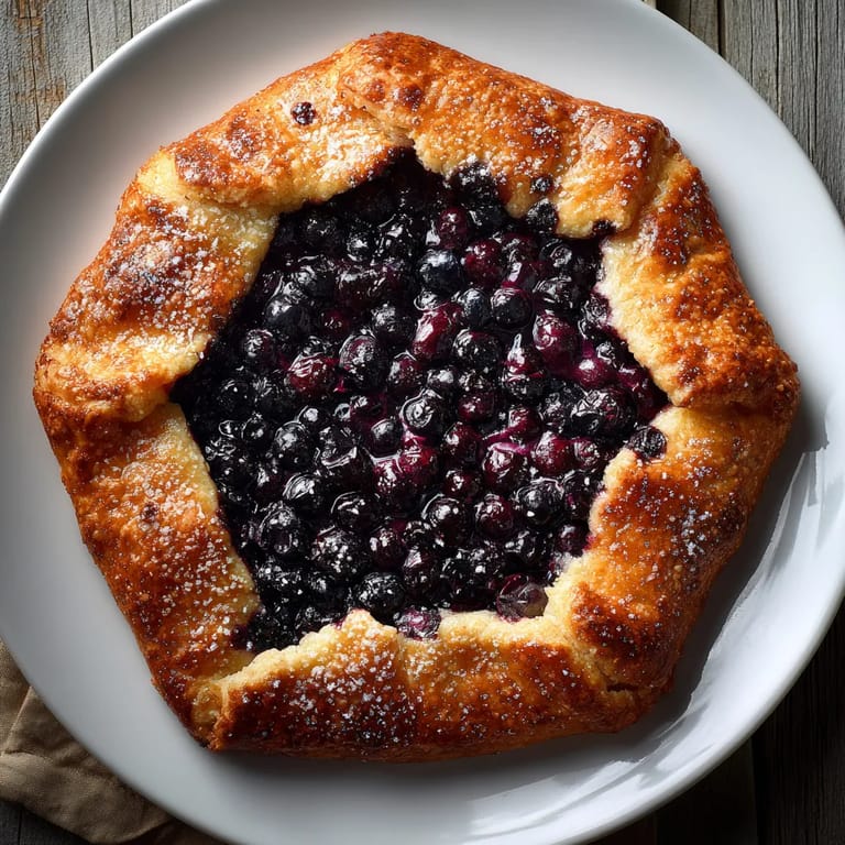 Mürbeteig-Galette mit frischen Blaubeeren, leichter Zitrusnote und goldbrauner Kruste, ideal als süßer Genuss.