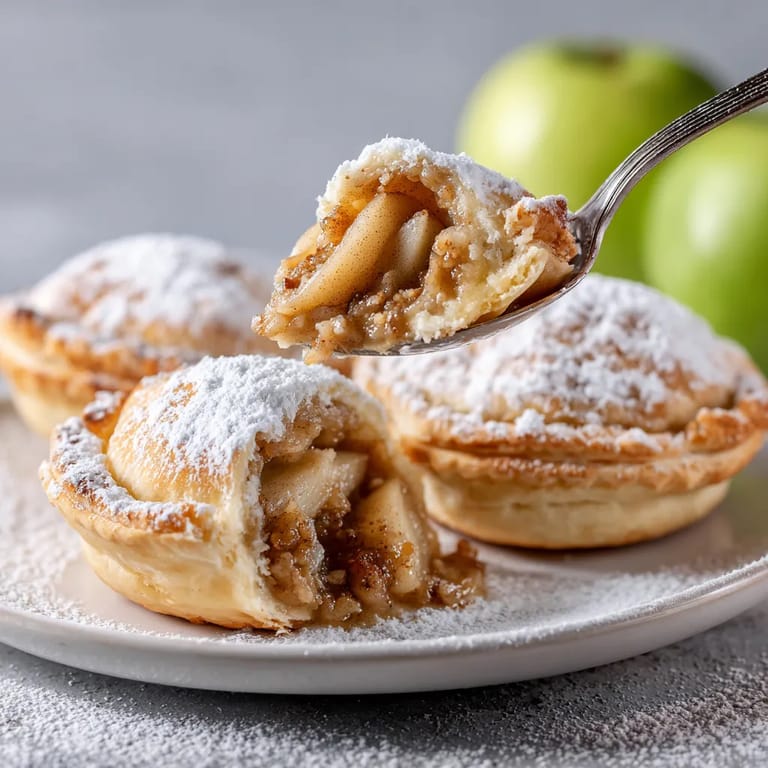 Bratapfel-Törtchen mit einer süßen Marzipan-Walnuss-Honig-Füllung, eingehüllt in knusprigen Blätterteig, sind das perfekte winterliche Dessert. Die Äpfel werden halb ausgehöhlt, mit einer aromatischen Mischung gefüllt und dann in feinen Teig gehüllt. Zimt sorgt für ein festliches Aroma, eine leichte Puderzuckerhaube rundet den Genuss ab. Weich und saftig innen, außen wunderbar knusprig – eine harmonische Kombination für kalte Tage. Am besten warm genießen und ideal als süßer Abschluss in der Weihnachtszeit.
