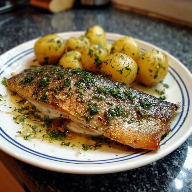 Merken Pan-Seared Forelle mit Kräuterbutter und neuen Kartoffeln gelingt immer dann, wenn ein elegantes, aber unkompliziertes Gericht auf den Tisch soll. Die krosse Haut des Fisches kombiniert mit duftender Butter und sahnigen Kartoffeln macht dieses Rezept zu einem Highlight für den Alltag oder besondere Gäste.