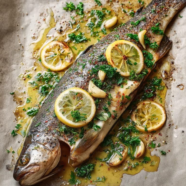 Merken Dieser saftige, im Ganzen gebackene Forellenzauber mit Zitronen-Butter-Sauce ist mein persönlicher Favorit für Abendessen, die sowohl einfach als auch beeindruckend sein sollen. Die Kombination aus zarter Forelle und aromatischer Zitronenbutter bringt die natürlichen Aromen des Fisches perfekt zur Geltung.