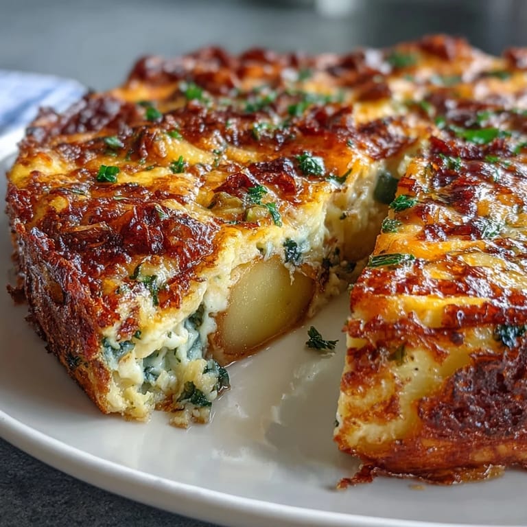 Merken My flatmate once showed up unannounced on a Sunday morning with fresh spring onions from the farmer's market, and I had exactly six eggs in the fridge. Within twenty minutes, this golden frittata was sliding onto plates, and she kept asking how something so simple could taste so complete. That's when I realized a frittata isn't just breakfast or lunch—it's whatever you need it to be, whenever you need it.