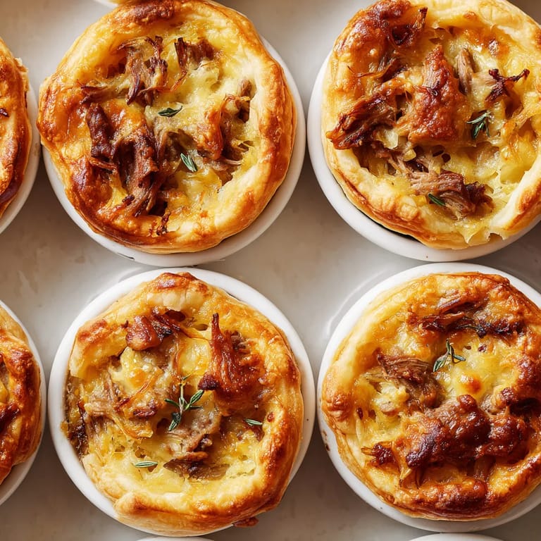 Merken Diese kleinen Gänse-Pastetchen mit Sauerkraut-Apfel-Füllung bringen feinste Weihnachtsaromen auf die Hand. Inspiriert vom festlichen Gänseessen, verwandeln sie klassische Winterzutaten in knusprig-goldene Mini-Gebäcke, die sowohl Gäste beeindrucken als auch Reste richtig lecker verwerten.