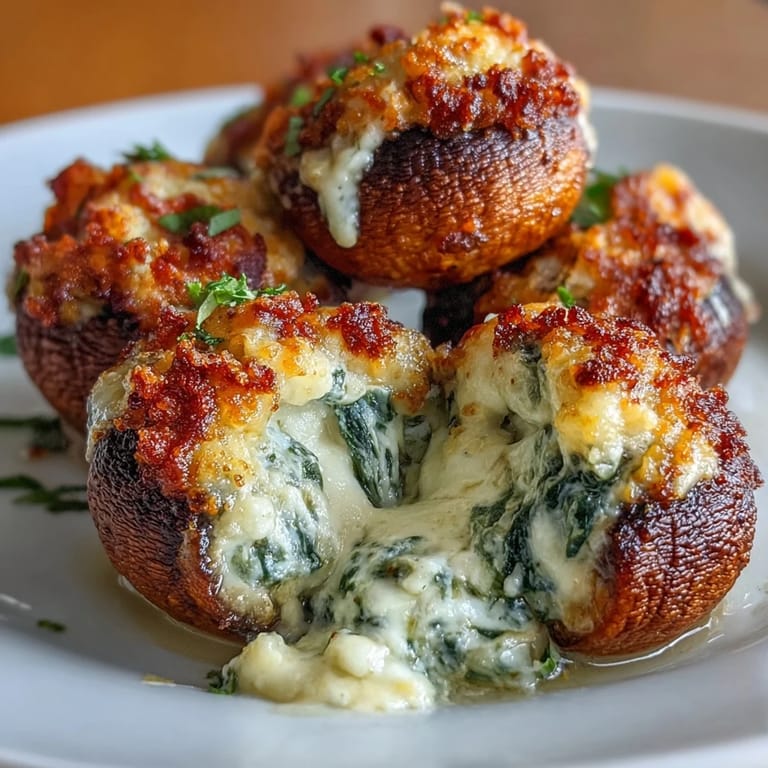 Merken My air fryer has become my secret weapon for impressing people without breaking a sweat, and these stuffed mushrooms proved it one Thursday evening when friends dropped by unexpectedly. I had cream cheese, fresh spinach, and a pile of mushrooms in the crisper drawer, and somehow twenty minutes later I was sliding golden, aromatic caps onto a serving plate while everyone gathered in the kitchen asking what smelled so incredible. There's something magical about how the air fryer transforms humble mushrooms into something that tastes restaurant-worthy, and the fact that nobody needs to know you spent less than half an hour in the kitchen is the best part.