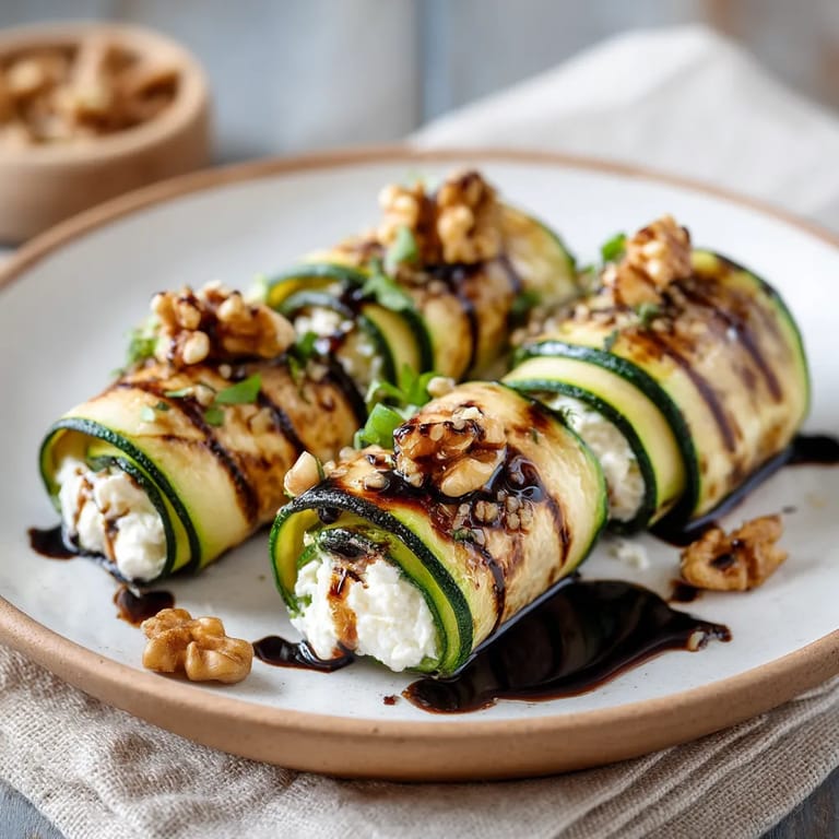 Merken Diese gegrillten Zucchini-Röllchen mit Ziegenkäse und Walnüssen sind das perfekte mediterrane Fingerfood für jede Gelegenheit. Zarte, rauchige Zucchinistreifen werden mit cremigem Ziegenkäse und knackigen Walnüssen gefüllt und mit einem Hauch Balsamico-Glasur verfeinert. Im Sommer liebe ich es, diese kleinen Häppchen mit Freunden zu teilen – sie verschwinden immer als Erstes vom Buffet.