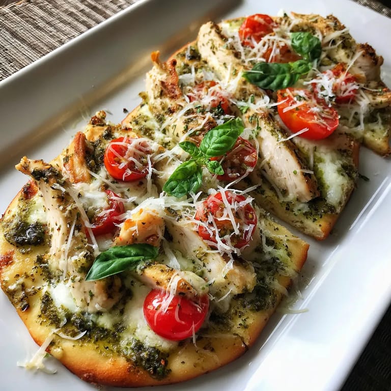 Merken Dieses knusprige Flatbread ist ein echter Genuss für alle, die italienisch inspirierte Aromen lieben und schnell etwas Besonderes auf den Tisch bringen möchten. Saftiges, gegrilltes Hähnchen trifft auf cremiges Basilikum-Pesto, goldbraunen Mozzarella und frischen Basilikum – perfekt für ein unkompliziertes Abendessen oder als herzhafter Snack mit Freunden.