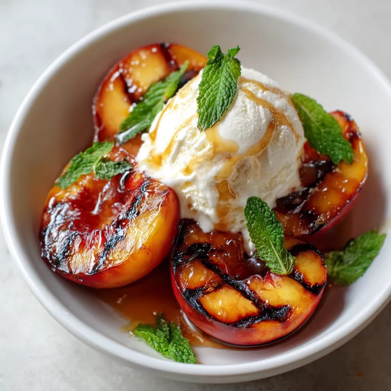 Merken Saftige gegrillte Pfirsiche mit Honig und Vanilleeis bringen den Sommer direkt auf deinen Teller. Die Pfirsiche werden kurz über heißem Grill sanft karamellisiert, bevor sie mit cremigem Eis serviert werden. Dieses Dessert ist blitzschnell gemacht und zeigt, wie aus wenigen Zutaten ein besonderes Geschmackserlebnis entstehen kann.