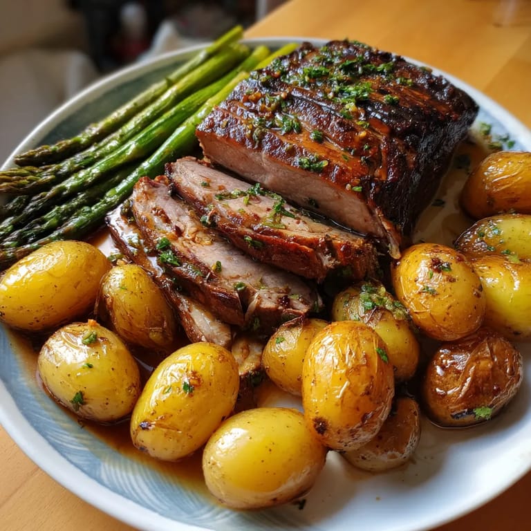 Merken Dieses saftige Kalbsbraten-Rezept mit zartem Spargel und neuen Kartoffeln ist meine Lieblingswahl für besondere Anlässe in der Familie. Der Duft von Rosmarin und Thymian, der sich durch das Haus verbreitet, kündigt immer ein festliches Essen an.