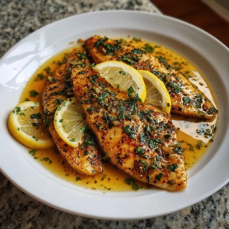 Merken Zarte Tilapiafilets brutzeln in einer goldenen Knoblauch-Buttersauce und sind das perfekte Abendessen, wenn es schnell gehen soll und dennoch festlich schmecken darf. Jedes Filet wird dick mit würziger Butter überzogen und bekommt durch Zitrone und frische Kräuter eine feine Frische. Das Rezept ist unkompliziert und gelingt ohne viel Aufwand – ideal für einen entspannten Feierabend oder wenn Gäste kommen.