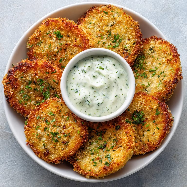Mit Panko-Paniermehl und Olivenöl-Spray erzielt man eine herrlich knusprige Textur. Scheiben nicht überlappen und direkt heiß servieren.