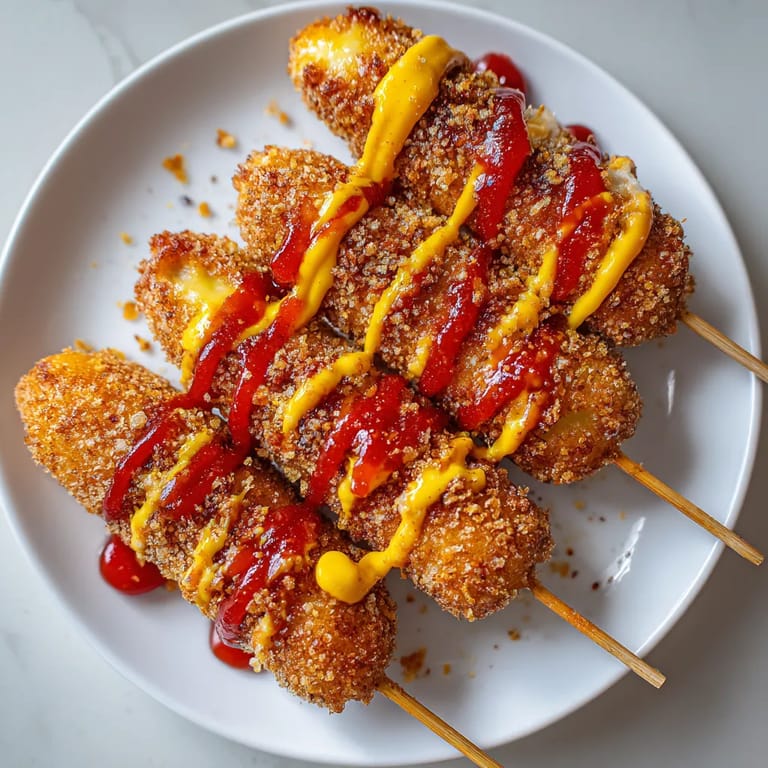 Ich liebe besonders den dehnbaren Mozzarella der beim ersten Biss zähflüssige Fäden zieht und immer für ein Wow sorgt Bei uns zu Hause gibt es oft lautes Lachen wenn jemand versucht den längsten Käsefaden zu schaffen Diese Corn Dogs sind ein Familien Highlight und lassen Kindheitserinnerungen aufleben
