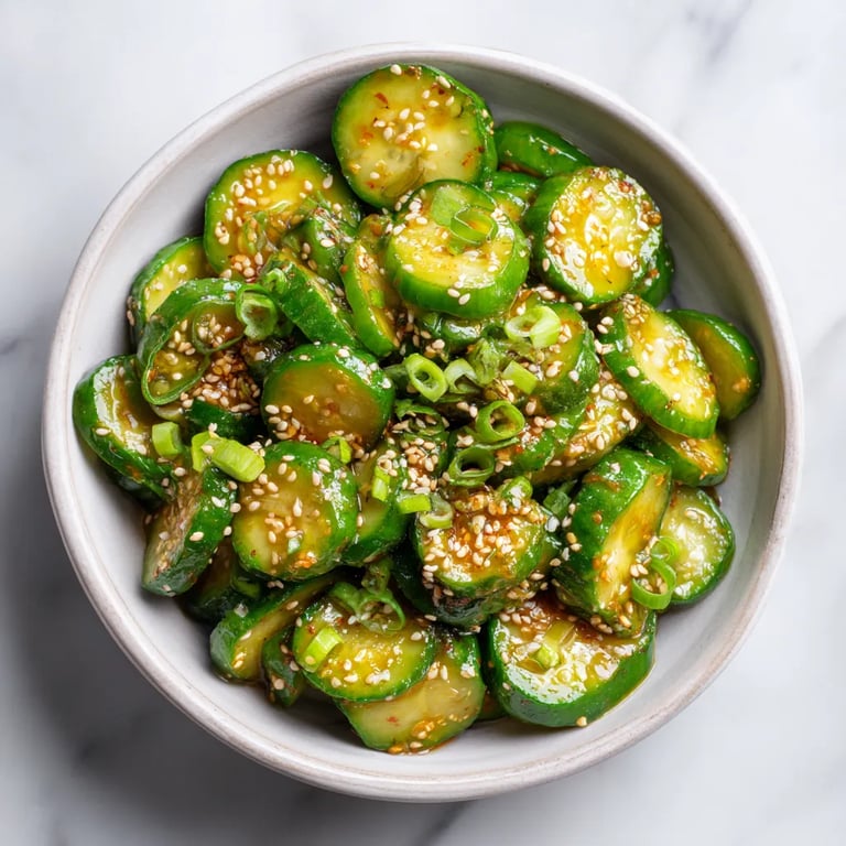 Ein koreanischer Gurkensalat begeistert mit knackigen Gurken, asiatischem Dressing aus Reisessig, Sojasauce und Sesamöl sowie einer angenehmen Schärfe. Frisch geschnittene Gurken werden kurz gesalzen, abgetropft und mit Knoblauch, Frühlingszwiebeln sowie Gewürzen vermengt. Optionale Sesamsamen runden das Geschmackserlebnis ab. Der Salat eignet sich ideal als kalte Beilage zu vielen Gerichten, lässt sich variabel schärfen und ist in nur wenigen Minuten fertig.