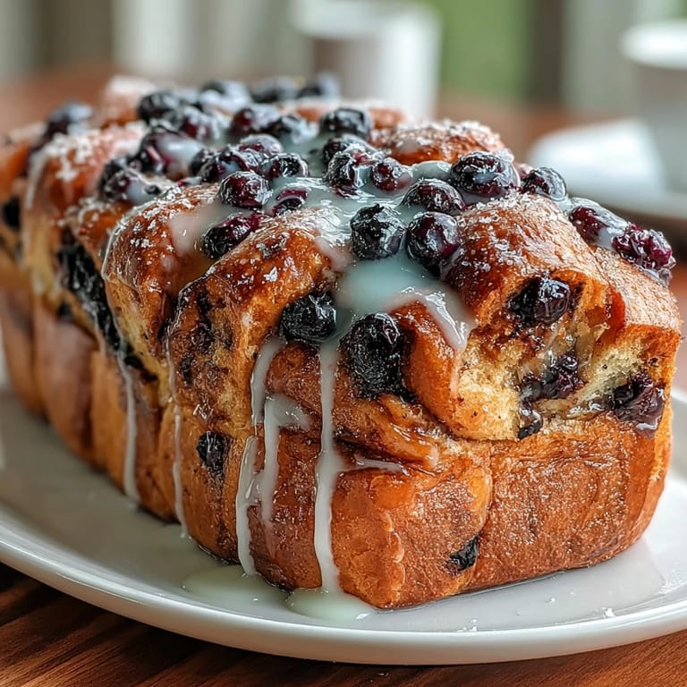 This isn't a cake masquerading as bread, so the fruit and zest should complement rather than dominate. The lemon zest needs to be finely grated and mixed with sugar before contact with the dough, which releases its oils and distributes the brightness throughout every layer. Fresh blueberries hold their integrity better than frozen during baking, but honestly, frozen works if that's what you have on hand, just don't thaw them first or they'll bleed color unevenly.