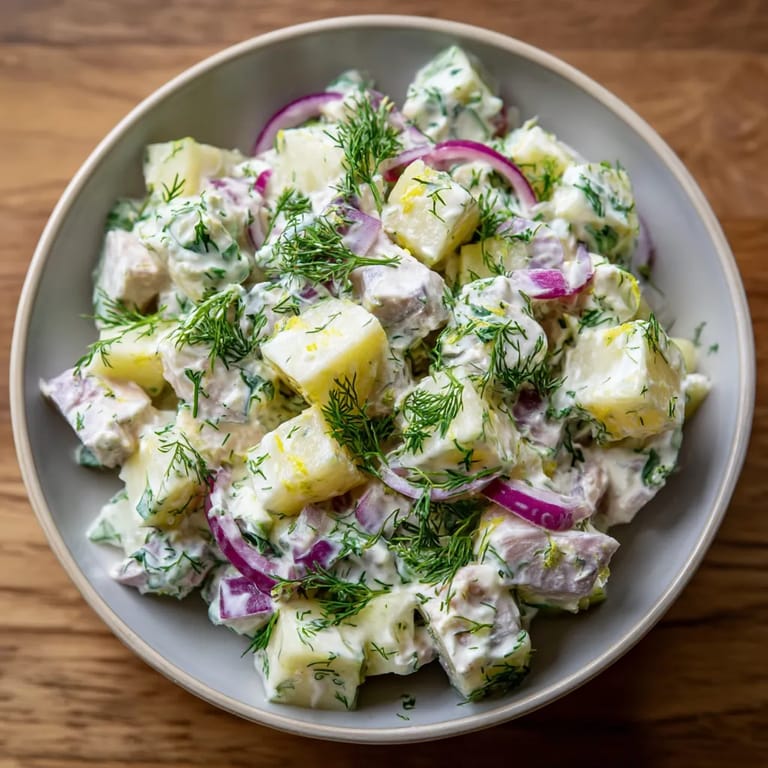 Merken Matjessalat mit Apfel und Zwiebel bringt nordische Frische direkt auf den Tisch und schafft durch die Kombination von mildem Fisch, knackigem Apfel und würziger Zwiebel eine perfekt ausgewogene Sommermahlzeit. Das Gericht ist schnell vorbereitet und schmeckt klassisch als leichtes Hauptgericht oder raffinierte Beilage zu Brot.
