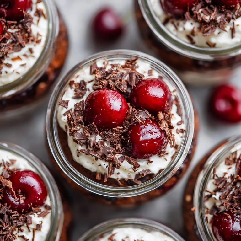 Merken Diese Mini-Schwarzwälder-Kirsch-Desserts im Glas sind ein moderner Genussklassiker mit saftigen Schokoböden, fruchtigen Sauerkirschen, fluffiger Kokossahne und knackigen Schokoraspeln. Einzeln im Glas serviert, bringen sie festliche Stimmung auf jede Tafel und passen perfekt zu besonderen Gelegenheiten oder als raffinierte Überraschung für Gäste.