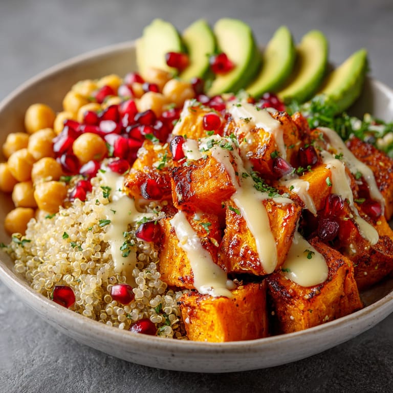 Mir gefällt besonders, dass die Kombination aus gerösteter Süßkartoffel und cremigem Tahin-Dressing richtig satt macht und man sich nach dem Essen rundum wohl fühlt. Jedes Mal, wenn ich dieses Rezept zubereite, freut sich meine Familie schon auf den frischen Geschmack und die bunten Farben.