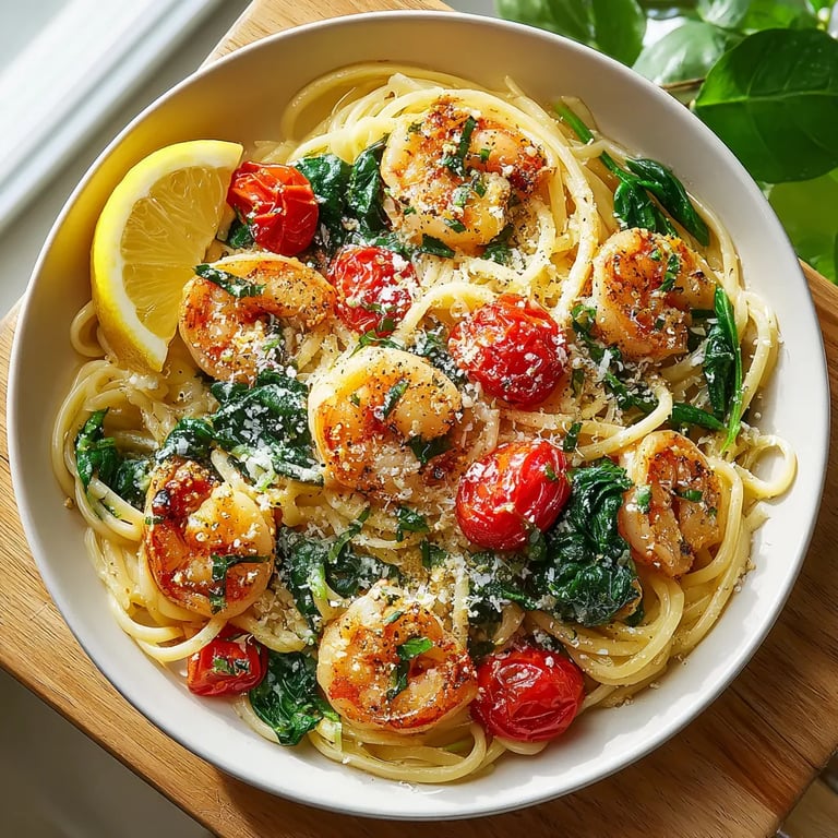 Merken Dieses Tomate-Spinat-Garnelen-Nudelgericht bringt mediterrane Leichtigkeit in deinen Alltag. Die Kombination aus süßen Kirschtomaten, frischem Spinat und saftigen Garnelen schmeckt nicht nur nach Sommer, sondern ist mit wenigen Zutaten ruckzuck auf dem Tisch. Perfekt, wenn es schnell gehen muss und du trotzdem etwas Besonderes essen möchtest.