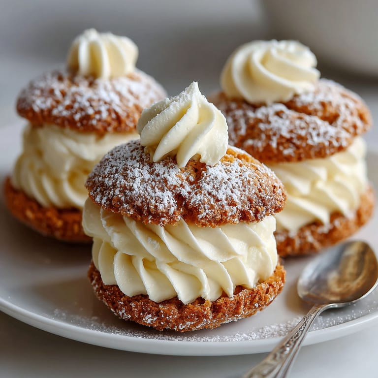 Knusprige Mandelkipferl treffen auf luftige Vanillecreme – das perfekte Sandwich zum Kaffee.