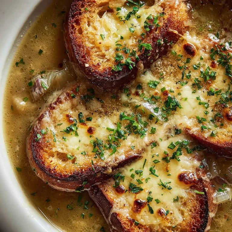Merken Diese käsige französische Zwiebelsuppe ist mein persönlicher Geheimtipp, wenn ich im Winter nach etwas Gemütlichem suche Frisches Brot und langsam karamellisierte Zwiebeln bringen wohlige Wärme auf den Tisch und der gratinierte Käse macht das Ganze unwiderstehlich Dieses Rezept ist unkompliziert besonders preiswert und schmeckt trotzdem richtig luxuriös